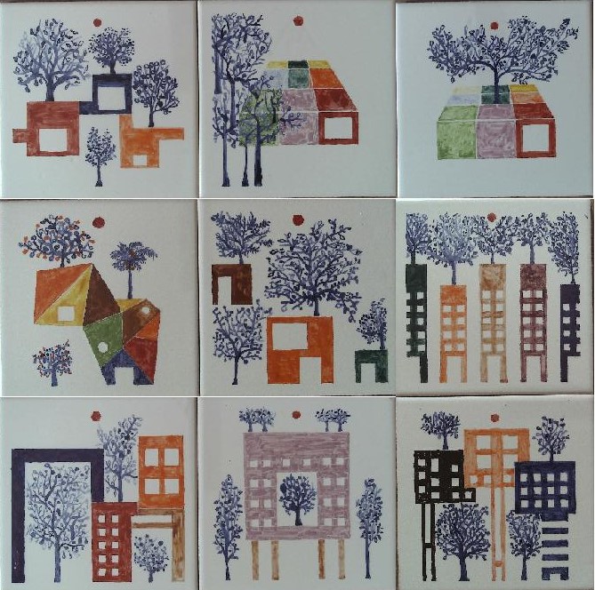 Tema: estudos em azulejos integração das árvores nos espaços arquitetónicos.